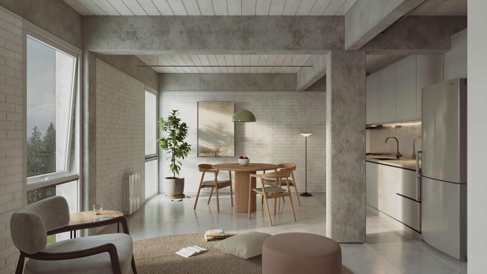 El mueble divisor organiza sin cerrar, la planta permite distintas configuraciones y cada zona encuentra su lugar sin bloquear vistas ni recorridos.